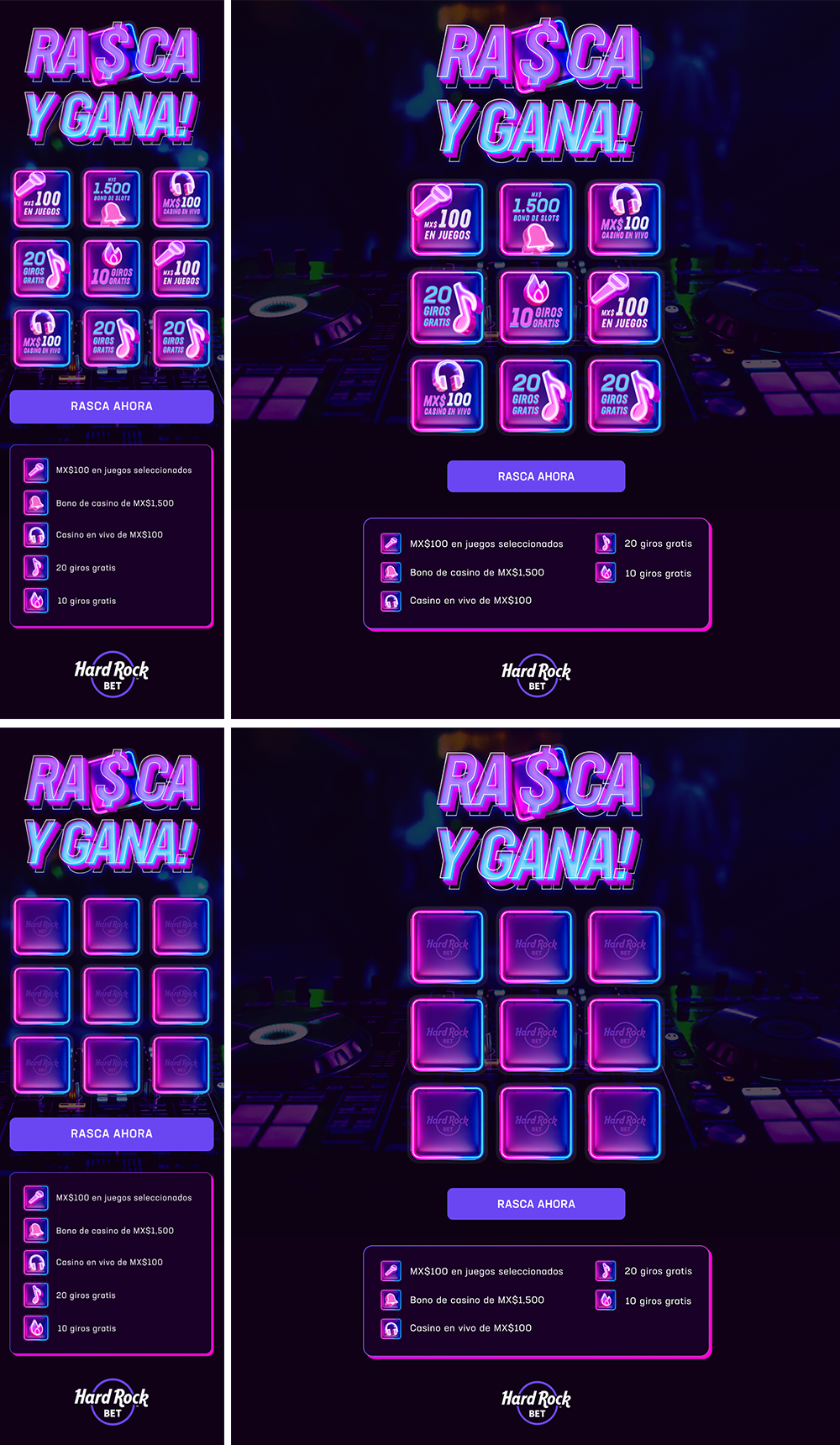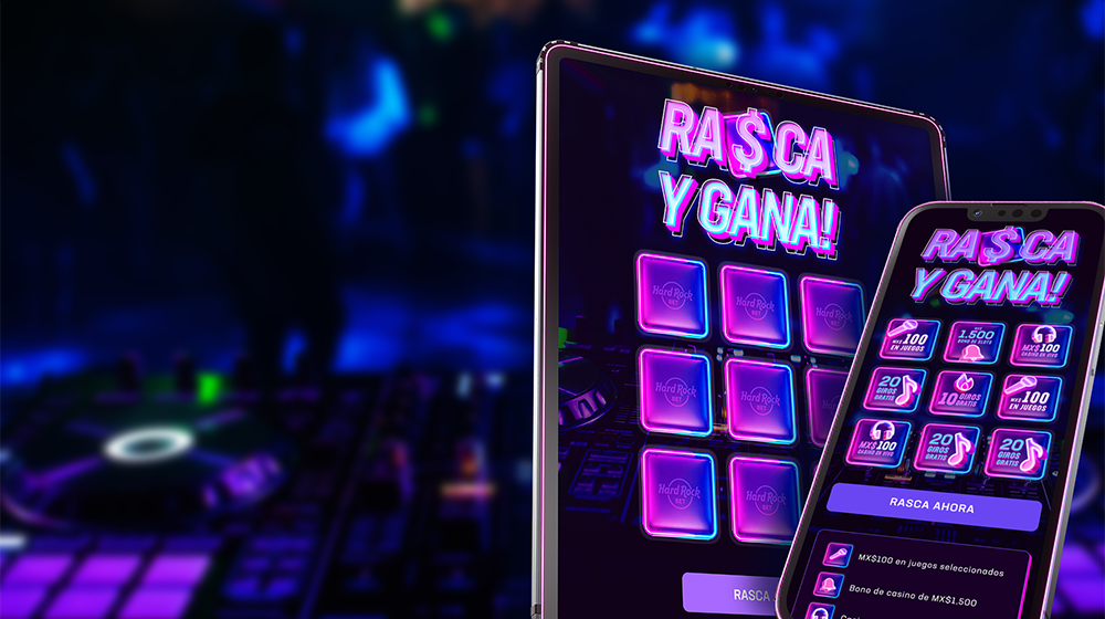 When creating the visual identity for the famous scratch card game for Hard Rock Bet Mexico, the inspiration came from the rhythm of the dance floor.